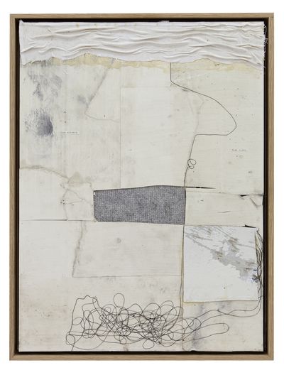Paraffin, Bindfaden, Papier, Kopien, Dreck, Lack, Silikon, Tackernadeln auf Glas Wax, yarn, paper, copies, dirt, varnish, silicone, staples on glass